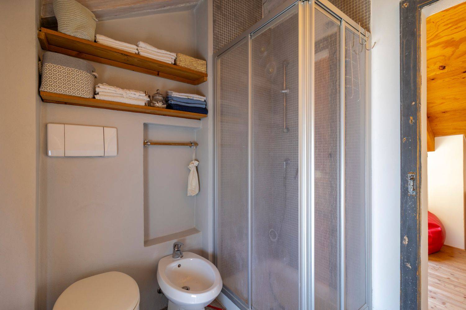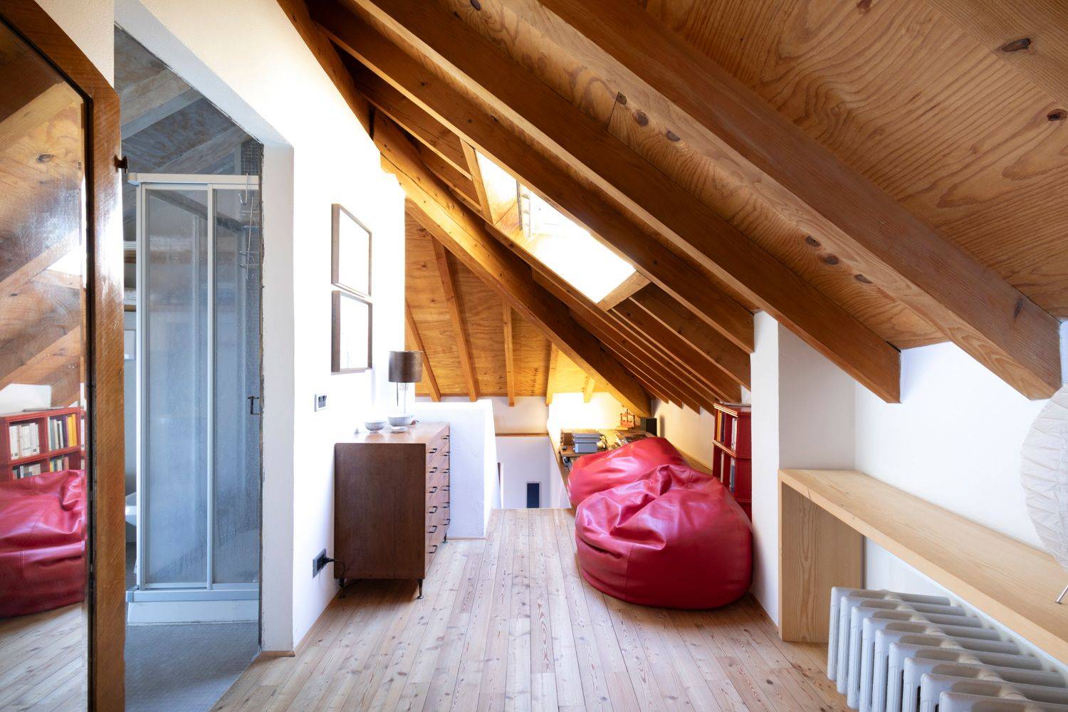 Attraverso una scala interna si accede al piano superiore, dove si trova una camera matrimoniale con bagno en-suite e un accogliente salottino, ideale come angolo lettura o relax.